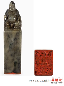 精品寿山石印章欣赏——《弥勒佛钮寿山石乌鸦皮印章》
