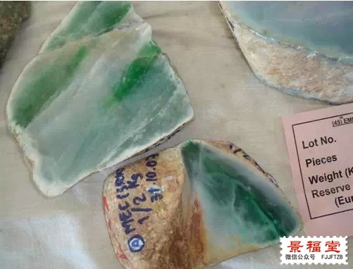木那是帕敢场区中重要而著名的老场口之一,由于开采时间长、储量少,产量比较低。该场口以盛产种色均匀的满色料而闻名。玉石中含有较为明显的点状棉,有帝王绿色、阳绿色、黄杨绿色,曾经出过阳绿满色玻璃种,偶尔会有水头好的秧苗绿色。裂纹相对较少,种的变化较大,从豆种到玻璃种都有,以豆种、糯化豆种和糯化种为主,从较中粗玉质至细腻玉质都有。玉质细腻,带“油性”,种老底好,毛病少,一般底带白色或飘翠绿色,冰种和玻璃种的绿色满绿色则极其稀少,故有赌性,尤其是“蒙头料”,其风险也相对较大。木那场口各层矿皮壳特点: