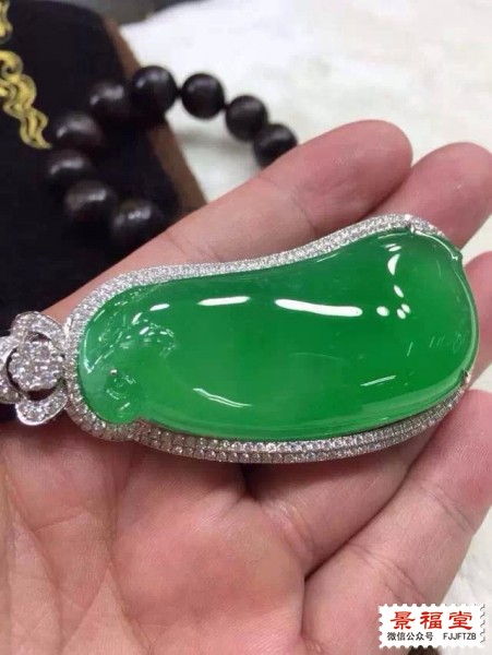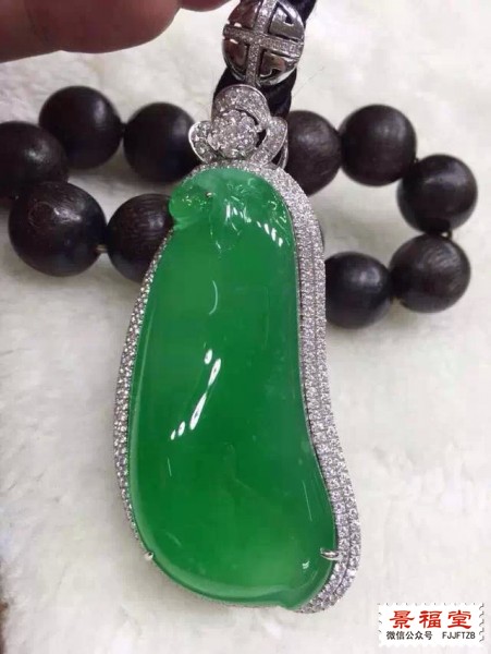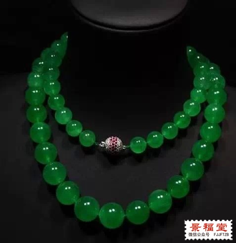下图这串珠链取料于一块重达120公斤的毛石。这块毛石在2002年底发现于木那场口,由蒋、王两位在缅甸从事翡翠开采的华侨拥有。他们在发现这块毛石后,历时一年多,经过反复多轮的研究,最终决定在这块翡翠原石的一条“色带”上取出57颗小料打磨成珠,串成一条项链。这样既把这块原石上最极品的部分组合在了一起,又因为翠珠无须镶嵌和雕刻,可以最大程度的展示翡翠天然、原始的美感。历时四年的取料、打磨,这串翡翠珠链才制作完成,业内人士给出了过亿元的估价。目前,这串项链还没有“起名”,七彩云南负责人表示对这串“国宝级”翡翠他们将悬赏总价值10万元的翡翠向全球公开征集名字。