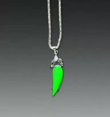 发财走运:“椒”与“交”同音,佩戴上翡翠辣椒的人,可以交好运、成好事。所以翡翠辣椒还寓意着发财走运,升官发财。