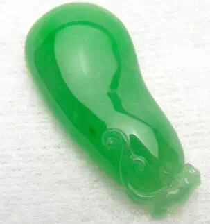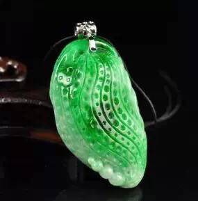 豆角:豆角,又叫做“福豆”,传说,因为吃素的和尚很喜欢豆角,所以,他们又把豆角叫做“佛豆”。明清时期翡翠传入中国,豆角作为雕刻主题就已经出现了。翡翠福豆雕工简单,所以是一种比较常见的翡翠造型。