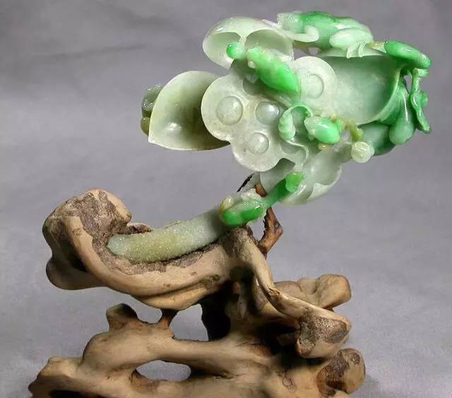 莲荷:翡翠上带有莲荷的图案,寓意出淤泥而不染。如果莲与梅花在一起表示和和美美,如果莲与鲤鱼在一起表示连年有余,如果莲与桂花在一起表示连生贵子,如果是一对莲蓬就表示并蒂同心。