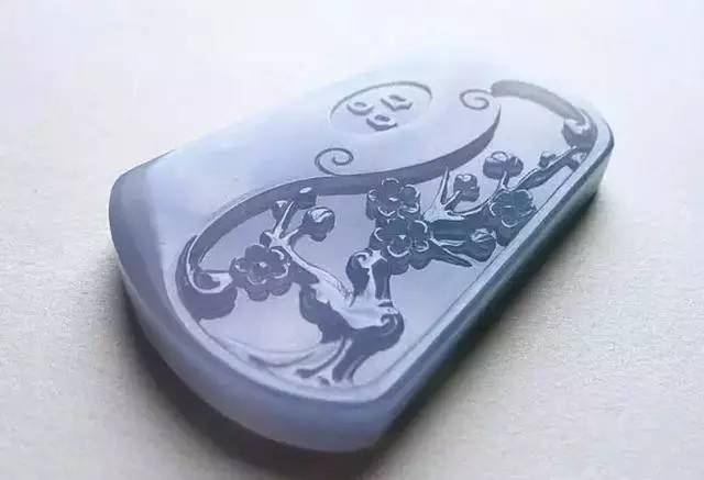 翡翠上带有梅花的图案,寓意傲骨长存。因其花开五瓣,也寓意花开五福。