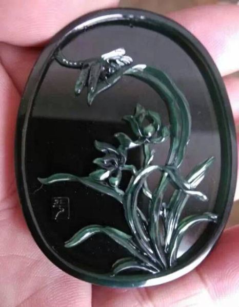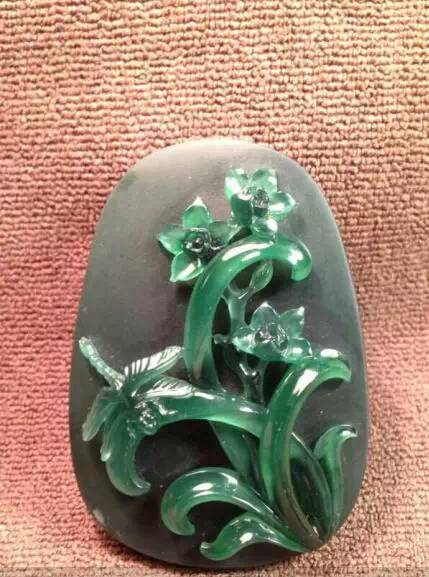 菱角:翡翠上带有菱角的图案,寓意伶俐,如果菱角和葱在一起表示聪明伶俐。