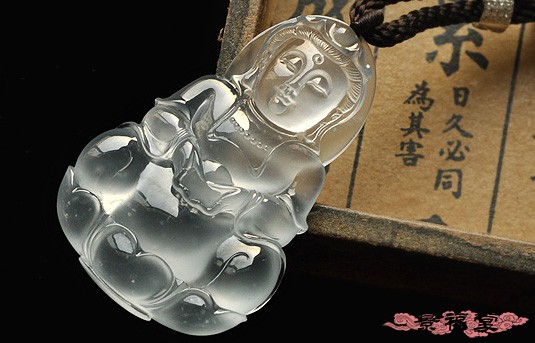 最美丽的白翡翠当属老坑玻璃种白翡翠,老坑玻璃种白翡翠表面略带荧光,晶莹剔透,质感十足,有东方古典韵味之美。人们常常将这种白翡翠制作成吊坠、耳坠等等,可以烘托佩戴者的优雅气质。