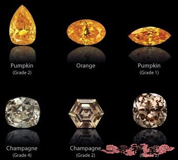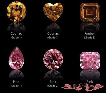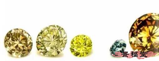 2. 只有颜色超过一定程度才能冠以FANCY级别,但除了黄色(或棕色)以外的,沾有一点点颜色达到Faint级别,也是彩钻。