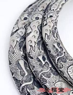 錾刻这门传统工艺的历史比花丝工艺更为悠久,始于春秋晚期,盛行于战国时期,在金银器上錾刻纹饰的制作手法以錾刻、镂雕为主。錾刻以其独特的艺术魅力为作品增加不少亮点。不同的錾刻技法使古今金银器上的纹样种类丰富多彩,常见有牡丹、菊花、八仙、仙女、寿星、麒麟、龙凤、飞鸟、山水等中国传统的造型。