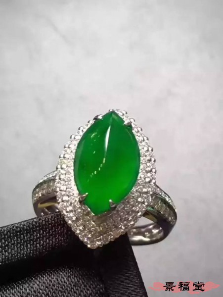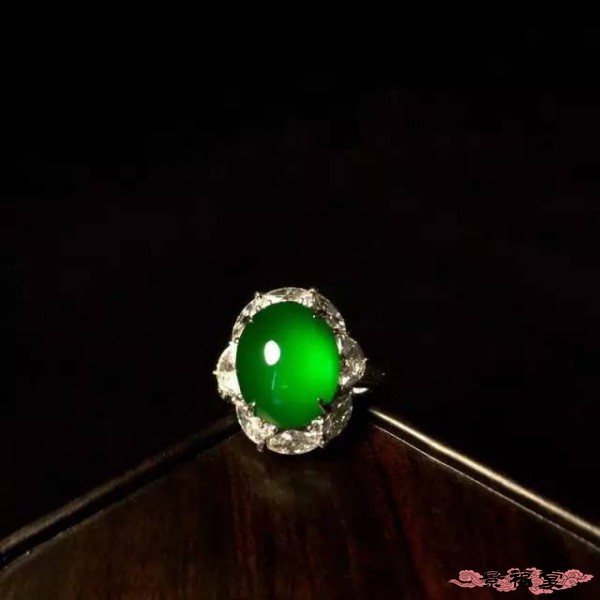 种好的戒面,镶嵌完后,更加美丽。在翡翠戒面中还有一种精品中的精品,那就是带光的戒面。这种戒面有一种近似月光石晕彩的效果,转动戒面会有一种柔美的光微微泛出,非常灵动美观。对收藏来讲,更要选择有光的。