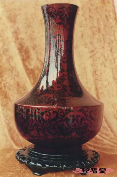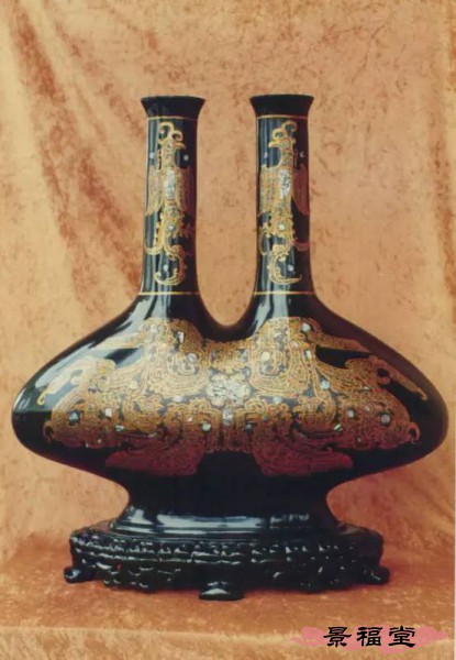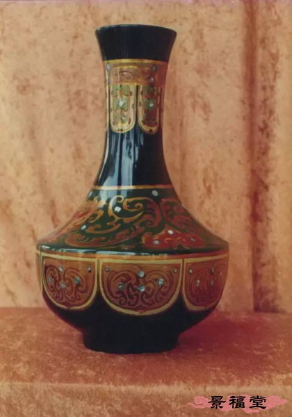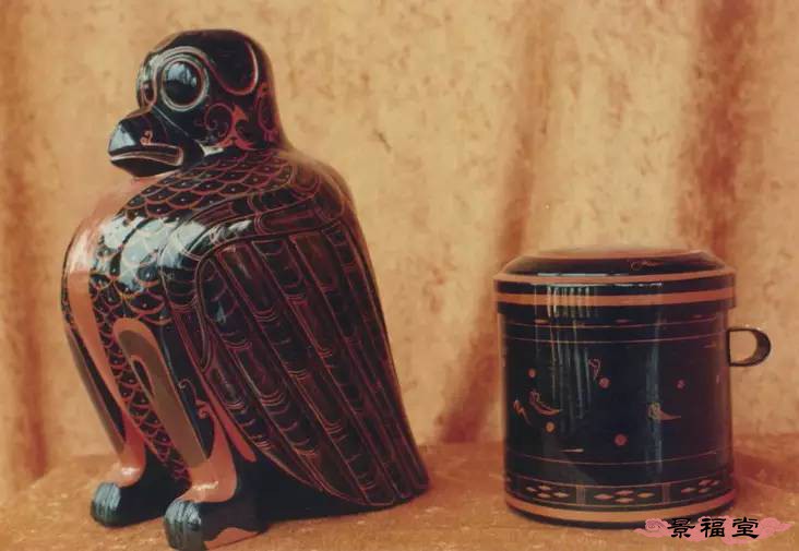 中國古代漆器的工藝,早在新石器時代就已經出現,夏代的木胎漆器不僅用於日常生活,也用於祭祀,並常用朱、黑二色來髹塗。《韓非子·十過》中記載:「禹作為祭器,墨染其外,而朱畫其內」,被認為是對早期漆器的描述。殷商時代已有「石器雕琢,觴酌刻鏤」的漆藝。1973年河南成蒿成台西村商代遺址中出土的漆器殘片,在木胎上雕飾饕餮紋,並塗上朱、黑兩色的漆。