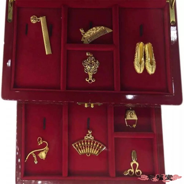 “婚庆九宝”已经不仅仅是一套婚庆的送嫁金饰,更是一种对百年好合,天长地久的寄托、期待与憧憬,是一种满足的幸福感,她所传递的文化理念远远超越了金本身的价值。