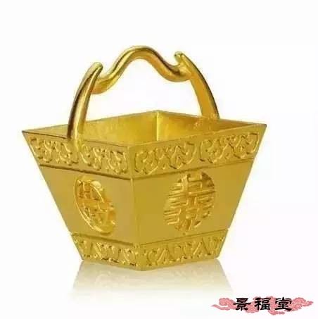 原是量粮食的器具,在婚嫁礼仪中用于彰显男方的财富雄厚、家境富裕,女儿嫁过去之后也能过上丰衣足食、轻松无忧的富裕生活。