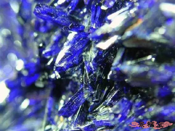 中国古代称为石青。晶体为柱状或厚板状,通常多呈粒状、钟乳状、土状集合体。外观呈深蓝色,玻璃光泽,硬度 3.5-4,比重3.7-3.9。常见与孔雀石共生。 本矿呈少见的深蓝色柱状结晶,它产于铜矿区的氧化带,常与孔雀石共生,可作为 工艺美术原料。在大陆也有用它来作玉雕和观赏石。