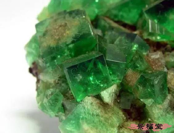 湖南,中国 ,多色性的萤石为最美丽的矿物之一,本矿由多个绿色正立方体集结成块状,晶体呈 玻璃光泽,透明到半透明,色泽艳丽,可作艺术品陈列。