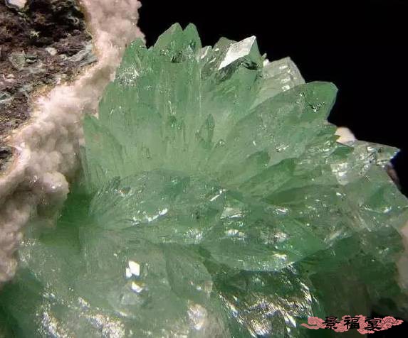 翠铜矿生成于铜矿区的氧化地带,硬度5,亮丽的祖母绿色,晶体透明至半透明 。本矿晶体个个鲜明而完整,色泽有如红绿灯标志的绿灯,搭配着纯白色方解石,是 理想之矿!