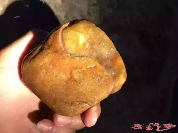 五、水翻砂石:常常呈球形或椭圆形,外表具有较厚的风化皮壳。表面颜色有黄色、红色和深绿色,表面矿物粒度较细。
