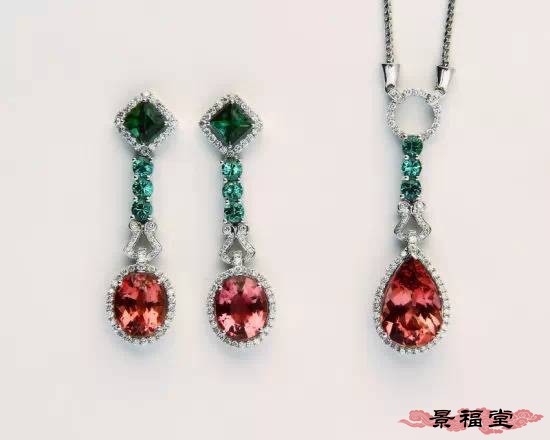 18k金绿色褐色碧玺套装