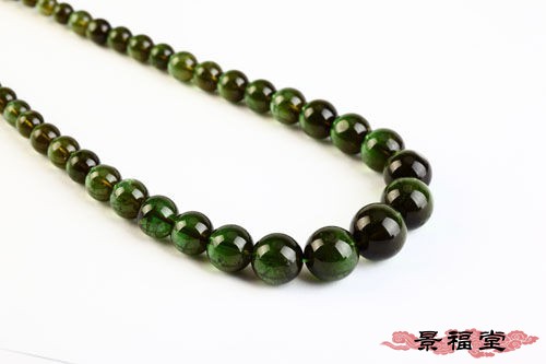 刚走进易缘水晶我们的目光就被碧玺的绚烂光芒所吸引,店主张女士介绍说:“碧玺的颜色非常多,大约有十五种之多,挑选碧玺的时候,主要看它的颜色是不是鲜艳,晶体是不是通透。”说着她就从保险柜里取出了一条绿碧玺项链“这是一条极品绿的碧玺项链,因为这碧玺水头很好,质地与戒面相似,最难得的是这串整体颜色非常均匀。我再拿出一条苹果绿的碧玺项链一对比就能看出来,在颜色上不如极品绿鲜艳。”之后,张女士又拿出了上次做电视节目的两串玫红碧玺给我们比较,可以对比出它们的颜色和通透度有着明显的不同。