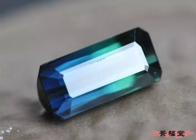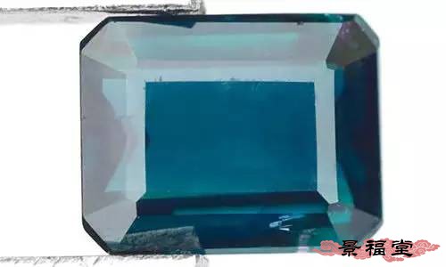 (3)碧玺经常被琢磨成祖母绿阶梯形状,因此在平行阶梯长边的方向经常可见一些管状的包裹物或棉絮物,而在平行阶梯短边的方向观察经常会发现其颜色变深,这是由于碧玺不同方向对光的吸收不同——这一特性可用来鉴定碧玺和一些合成的仿制品。