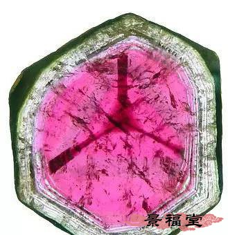 经常接触碧玺的人想要分辨爆花晶并不难,因为具体内部的颜色分布很不自然,儿对于刚接触碧玺的新手,就很容易在“爆花晶”这里吃药。那么如何分别爆花晶呢?这两张图片能够很好地说明问题,爆花晶是无色水晶通过剧烈的热胀冷缩原理,在晶体内部产生裂隙,在通过染色将颜色侵染进裂隙。这样的晶体颜色分布极度不自然,颜色集中在裂隙处。而高品质的天然碧玺是没有这样的裂隙的,即使是有裂隙的碧玺,颜色也不会这样集中在裂隙中。
