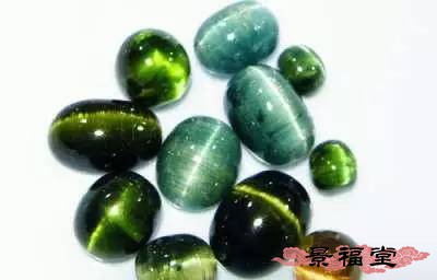 有的绿色碧玺中有很多细缝或针状包裹体,切成弧面型,可见猫眼效应。其它颜色的有猫眼效应的少。
