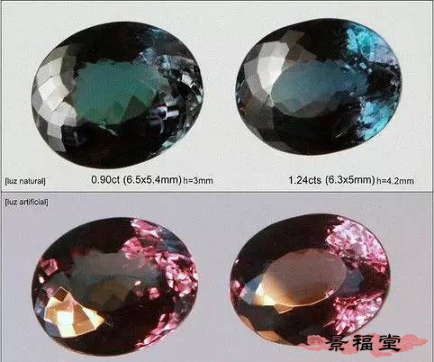 在冷暖灯光下会变色的亚历山大碧玺