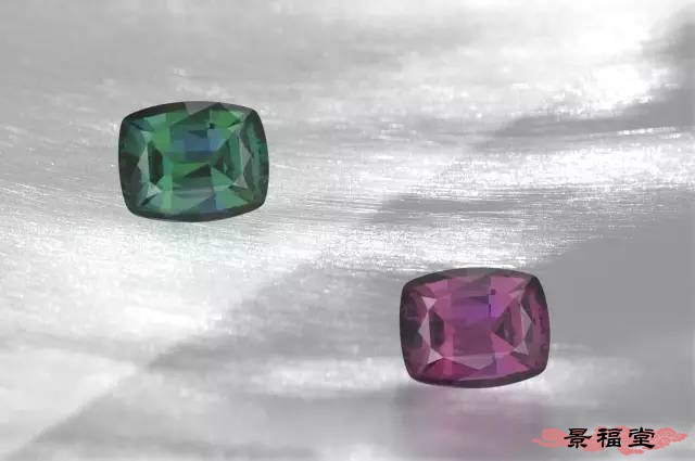 宝石的颜色随入射光光谱能量或入射光的波长变化而变化的现象称为变色效应,简单地说就是在不同光源下宝石呈现明显的颜色差异。最著名的就是具有变色效应的金绿宝石,称为“变石”,又称“亚历山大石”。其余具有变色效应的宝石还有:蓝宝石、石榴石、尖晶石、琥珀。