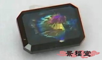 某些宝石晶体,内部有极薄的裂隙面,光线通过裂隙面产生干涉,使裂隙表面呈现七彩光芒的光学效应,称为薄膜干涉效应。