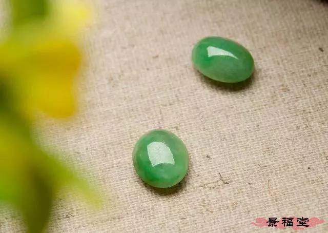 翡翠戒面的颜色极为丰富,绿、白、紫、黄、红、黑,涵盖多种色系,我们可依据个人的喜好和镶嵌的需要不同,加以选择。当然,最具价值的还是种水俱佳的浓阳正匀的绿戒面。