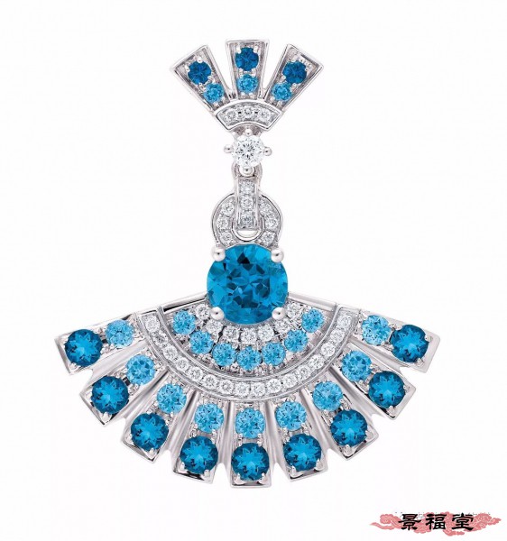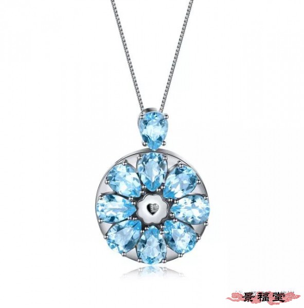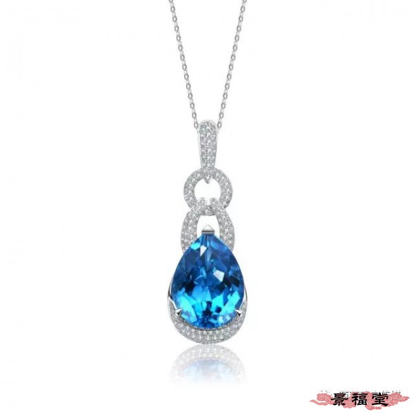 18K白金镶伦敦托帕石及钻石吊坠