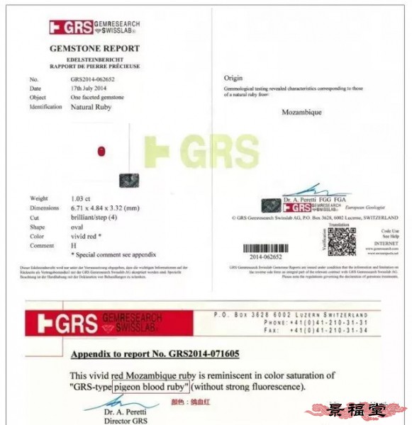 ➤ 我们来看GRS证书和AIGS证书上的红宝颜色:
