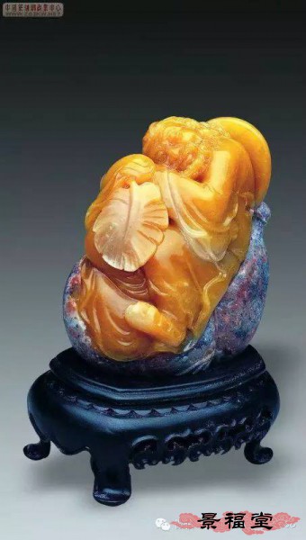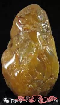 黄旗降石 色黄如蜜蜡,根据其浓淡深浅,称为“秋葵蜜蜡“、“柑黄蜜蜡”和“蜜杨梅”等。偶见黄中带红、白各色,色界分明,是巧色石雕的首选石材之一。