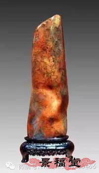 红旗降石 以其色的浓、淡分为李红旗降石、橘红旗降石、玛瑙红旗降石、珊瑚红旗降石和赭红旗降石数种。颜色艳丽照人,光彩夺目。