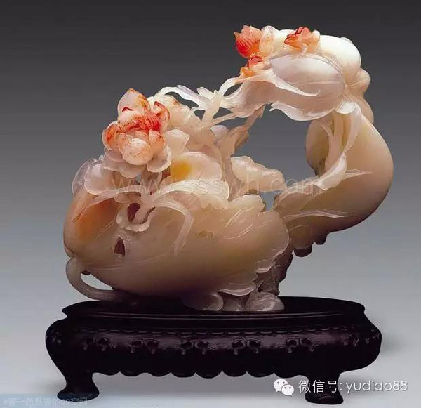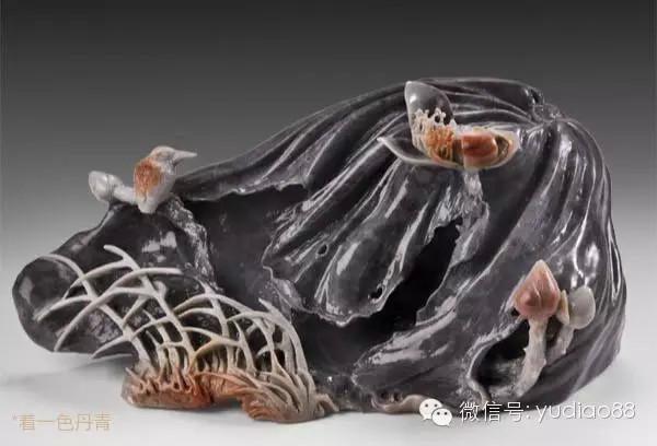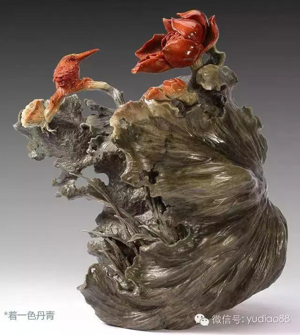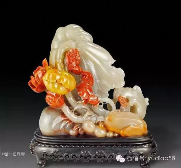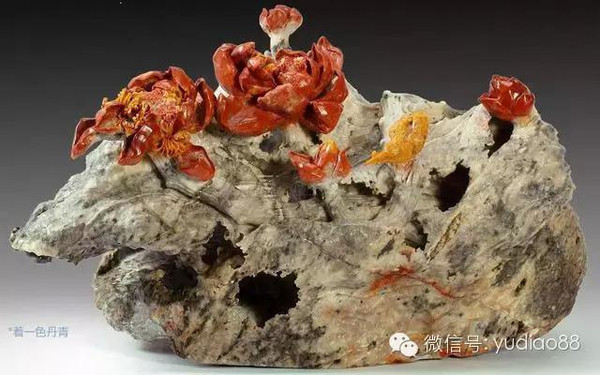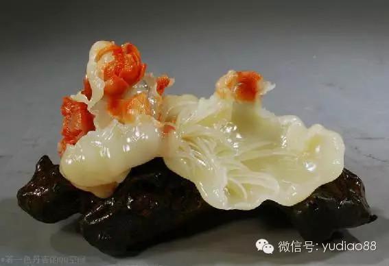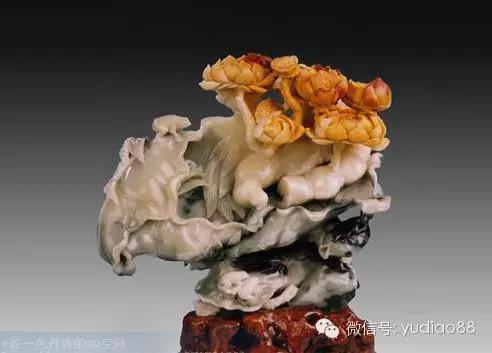 小的“龙嘴”,往里面凿,凿出一颗“珠”来。这颗“珠”剥离原石材使它滚动自如,但却要比“龙嘴”大,不至于滚出“龙嘴”,1955年福州寿山石雕名艺人陈敬祥创作的《求偶鸡》也是寿山石镂雕的典型作品。他用一块寿山石材雕了一个鸡笼,然后通过鸡笼小小的空格,伸刀到笼里去,利用原石又雕了一只鸡,栩栩如生,被北京人民大会堂所收藏。以后福州寿山石雕艺人多学习陈敬祥的《求偶鸡》镂雕法,成为寿山石艺的象征。
