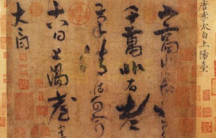 唐李白上阳台帖为李白书自咏四言诗,也是其唯一传世的书法真迹。上阳台帖用笔纵放自如,快健流畅,于苍劲中见挺秀,意态万千。结体亦参差跌宕,顾盼有情,奇趣无穷。