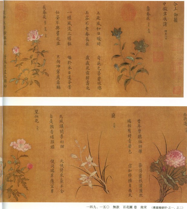 百花图卷是已知我国现存最早的一件女性画家的作品,是南宋女画家杨子所作。此绘画长卷现为吉林省博物院的镇院之宝,它是上个世纪六十年代,大收藏家张伯驹先生捐赠给吉林省博物馆的。百花图卷是一件流传有绪的书画作品,它曾著录于石渠宝笈初编、吴其贞书画记和张伯驹丛碧书画录。该画卷乾隆时期收入清内府收藏,清朝灭亡后,百花图卷散失于民间,后被张伯驹先生收藏,1964年张伯驹先生任吉林省博物馆副馆长期间,将百花图卷捐赠给吉林省博物馆收藏至今。