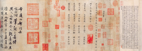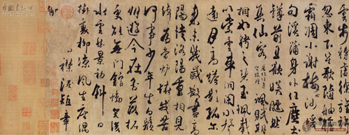 张好好诗卷由宋徽宗赵佶题名,见于宣和书谱卷九,并钤有宋徽宗诸玺印,保存着当时内府装潢式样。后曾递藏于宋代贾似道、明代项元汴、张孝思、清代梁清标等人,乾隆年间入藏内府。