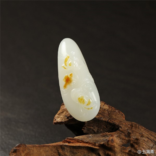 玉质较好的青海料染色的东西,白度润度都没得说了,雕工也很不错,类似的东西染色的方法一般是点皮,皮色很少,而且有的东西做的很逼真,这个做的比较假还是很容易分辨的,但是有些东西的皮子做的仿真度极高,对一些初级的玉友具有定的杀伤力。