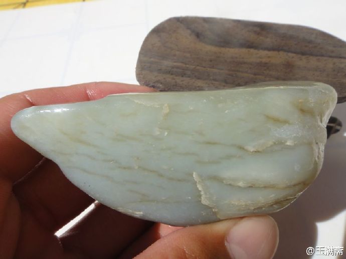 和田玉山流水特点:开采出的位置离原生山料的位置最近,块度较大,玉石棱角稍被磨圆磨掉,表面已经变得比较光滑,表面有定向性的水蚀痕迹,玉料比山料更润滑、细腻,油性稍好,形成时间比山料稍久远。