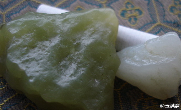 和田玉山料特点:块度有大有小,呈明显的棱角,质量不如籽料玉石,略显粗糙,有些山料不带皮色,有的山料则有有红糖或类红糖的颜色。