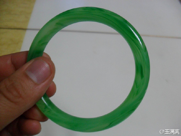 染绿色大理岩多用做手镯、雕件等较大的仿翡翠制品,主要见于低档宝石市场。