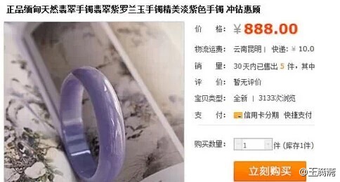 看见没,紫到这种程度的紫罗兰手镯,888,还是缅甸天然翡翠耶!谁说翡翠是奢侈品,谁说翡翠是“疯狂的石头”,看吧,多平民化。