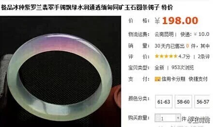 卖家说的很清楚:极品冰种紫罗兰翡翠,特价198,还在等什么,速度上啊,一夜致富就在此一举了。