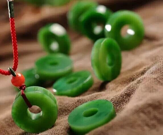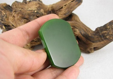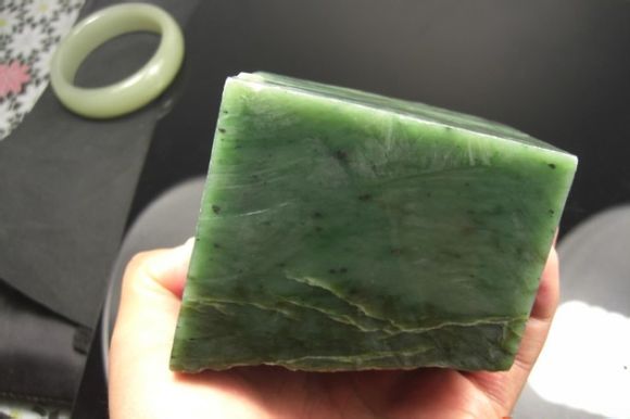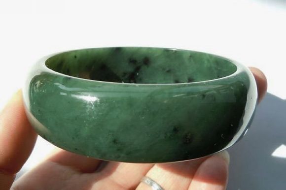和田碧玉的颜色呈菠菜绿,光下不透,细看里面有自然形成的条纹,里面有黑点,精光内敛,拿在手中盘摸一会,会感到有油的质感。价值当然是非常高的。而现在市面上的和田碧玉也越来越少了,很难找到。