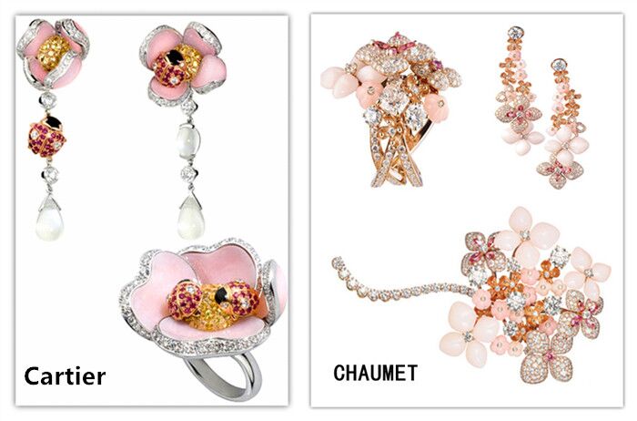 几乎所有国际一线珠宝品牌:卡地亚、梵克雅宝、尚美巴黎、香奈儿、蒂凡尼、迪奥、萧邦……都相继使用粉红蛋白石为主石,推出高端珠宝首饰。或浪漫动人、或温柔低调,或缠绵多情。温暖柔情的色泽似乎可以穿透女人心中最柔软的位置,像具有神奇魔力的爱情石,守护女人心底最纯美的爱情故事。