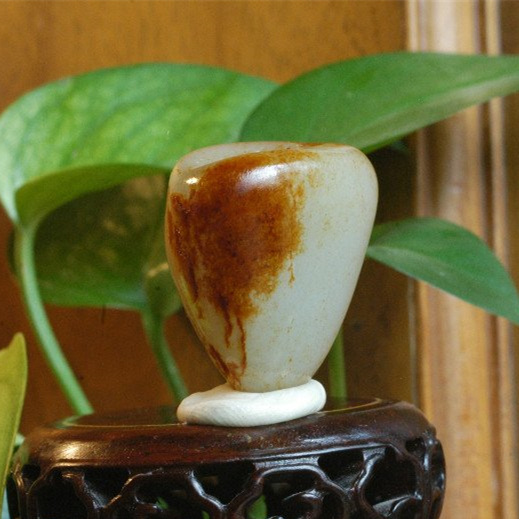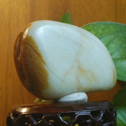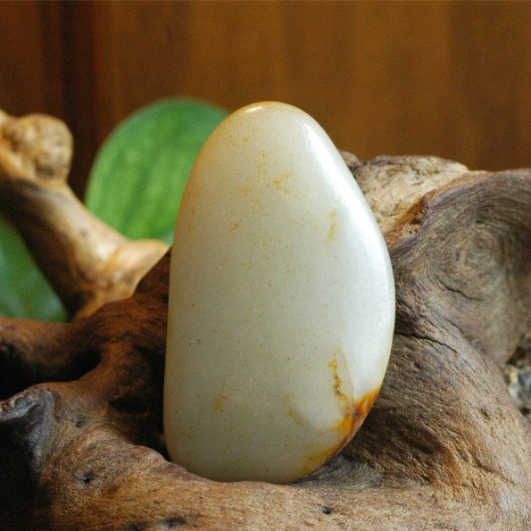 “荔枝白”,不堪白,但莹润,水头比普通的白玉高,可达微透明。玉肉若荔枝肉,有灵动性,量稀少,是近年被推崇的美玉。多数初学者推存和田白玉的理由,即纯净中上,肉眼无结构,白度中下,油性中下,接近于青海料。市场上的挂件多来之于青海此料中,佩戴和把玩一段时间后就变得如同玻璃感变乌,也是初学者最容易走眼的品种!而此种的和田籽料,上手感极强,很多红皮籽料出于此种,眼下价还不高,前景广阔。