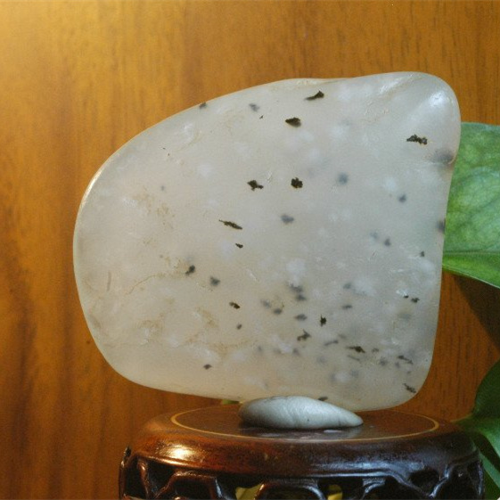 “雪花玉”是白玉的底子上分布着更白的絮状物---雪花般的白斑或白花,白团点较多、较均匀地分布在玉石上,犹如冬天里雪花飘舞在天空中。“雪花玉”的底子有白玉底、青白玉底、青玉底。以雪花粒均等、分布均匀为上。这也是未引起市场重视的名品。古代有名品玉器---“一棒雪”玉杯,经考证其所用材质应为“雪花玉”。“雪花玉”是较羊脂玉更名贵、更稀缺的玉石。在我国和田玉及昆仑玉中可偶然见到。清末至近代的玉件中,可觅到其踪影,藏品多在国家博物馆,台北故宫博物院。