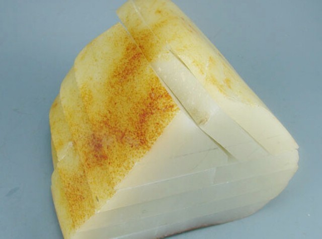 和田玉商人王某购买了一块8公斤的和田玉籽料,一番鉴定后,该籽料部分肉质细腻,其余部分黑色重皮有裂隙,得出结论:该料不要切。王某一口否决了专家的意见。斗胆现场切开了此料。