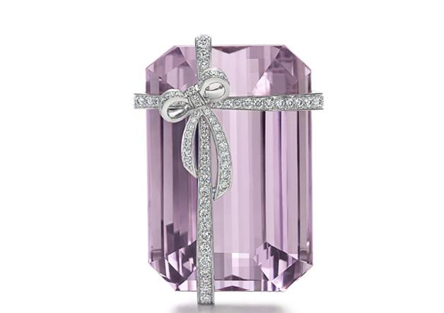 蒂芙尼紫锂辉石和钻石蝴蝶结胸针