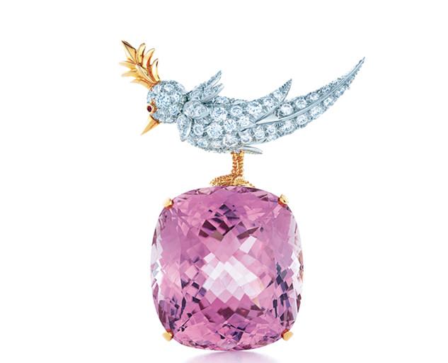 Bird on a Rock紫锂辉石和钻石胸针,由让·史隆伯杰为蒂芙尼专属创作