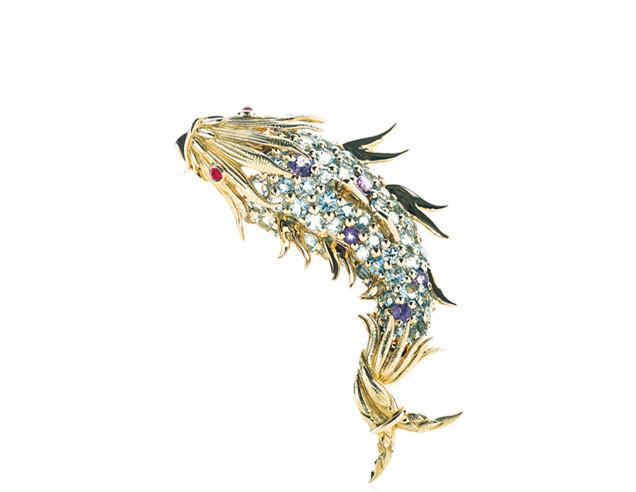 钻石和宝石打造的鱼形胸针,让·史隆伯杰为蒂芙尼专属设计。